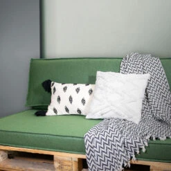 Staat je nieuwe palletbank al klaar? Maak je loungeset compleet met het groene palletkussen. De 2L Home & Garden Palletkussens Metro Lounge hebben een mooi geweven patroon.