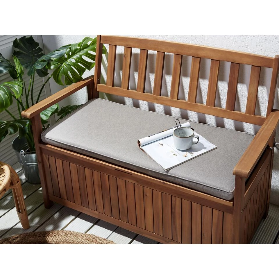 Buiten zitkussen voor op een bankje. Geef je tuinbank een functionele finishing touch met dit rechthoekige zitkussen. Het kussen geeft niet alleen een stijlvolle touch aan je tuinmeubilair, maar biedt ook zitcomfort. Hij is speciaal ontworpen voor gebruik buitenshuis, met lichtbestendige en afneembare hoes en touwtjes om hem op zijn plaats te houden.