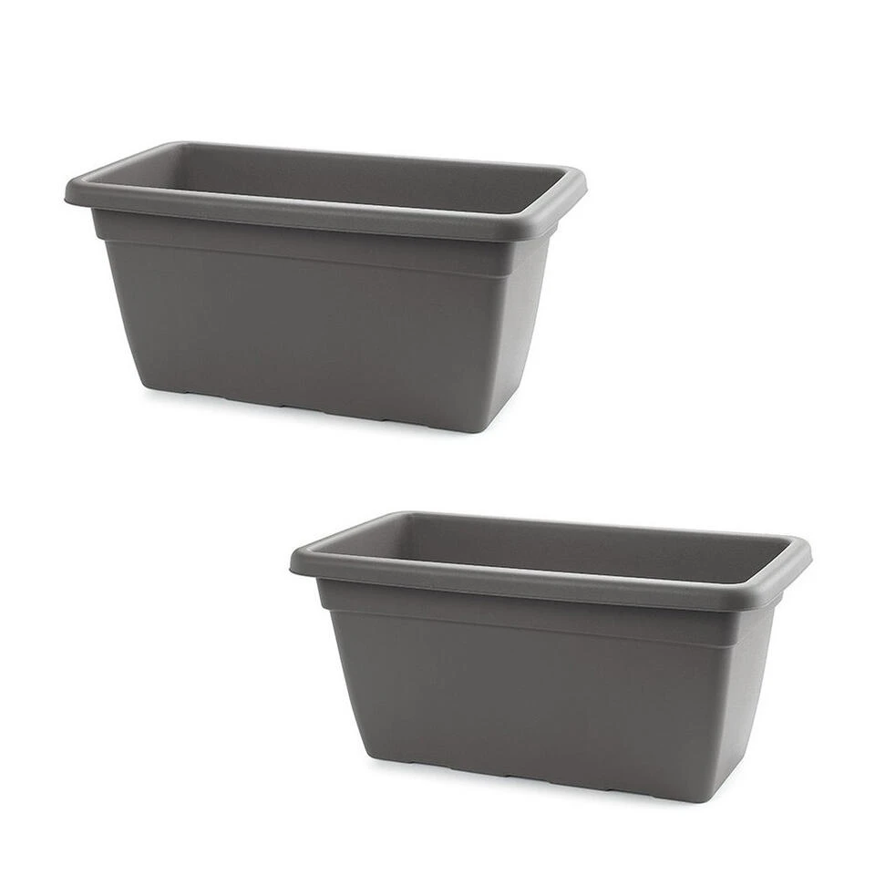 Grote plantenbak antraciet grijs rechthoekig 80 x 40 x 33 cm. Materiaal: polypropyleen (plastic/kunststof). Bloembakken/plantenbakken/plantenpotten voor binnen en buiten. Ook zeer geschikt als extra bierkoeler voor flessen of blikjes of spullen/speelgoed/gereedschap opslagbak/stapelbak.