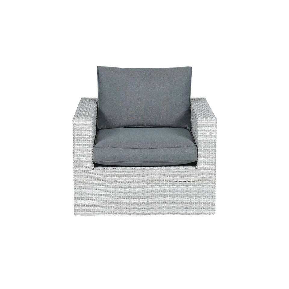 De lounge fauteuil is B 90 x D 85 x H 65 cm met wicker in de kleur vintage grey met aluminium binnenframe en polyester antraciet kleurige kussens. Een uitgebreide collectie loungestoelen vind je binnen de categorie tuinmeubelen. Tuinmeubelen van verschillende mooie merken.