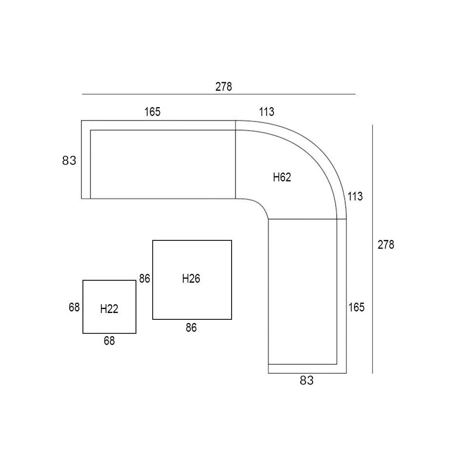 1x Kleine loungetafel 68x68x22 cm.