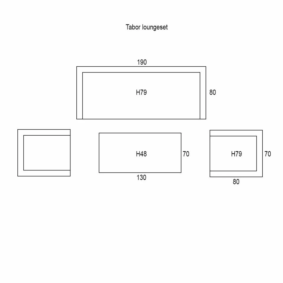 De loungeset bestaat uit een bank, twee stoelen en een loungetafel. De loungeset wordt inclusief kussens geleverd. De comfortabele loungebank en tuinstoel zijn super mooi bij elkaar gecombineerd. Door de loungetafel kun je ideaal genieten van de zomerse dagen. De zit- en rugkussens van deze loungeset zijn van topkwaliteit met een hoge kleurintensiteit. Alle kussens zijn voorzien van een rits waardoor je ze gemakkelijk kunt wassen. Afmeting loungebank: 190 x 80 x 79 cm. Afmeting loungestoel: 80 x 70 x 79 cm. Afmeting lounge tafel: 130 x 70 x 48 cm.