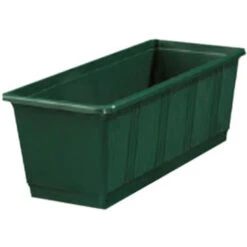 Plantenbak donker groen rechthoekig 60 x 17,5 x 14,5 cm. Materiaal: polypropyleen (plastic/kunststof). Bloembakken/plantenbakken/plantenpotten voor binnen en buiten.
