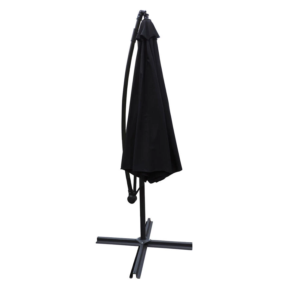 Wat de accessoires betreft, is het noodzakelijk ballast of opvulbare platen toe te voegen om ervoor te zorgen dat het op zijn plaats blijft. Happy Garden adviseert u ook om uw excentrieke parasol te beschermen met een hoes wanneer u hem niet gebruikt, zodat hij beschermd is tegen slecht weer.