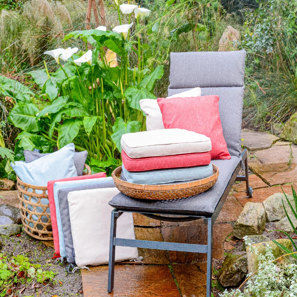 Daarbij is aan ons nieuwe soort tuinkussen een moderne draai gegeven. We hebben het kussen voorzien van een luxe piping, een hoge kwaliteit rits toegevoegd om de hoes gemakkelijk te kunnen reinigen en het oppervlak egaal gehouden door er geen knopen in te naaien. Zo is uw tuin helemaal van deze tijd.