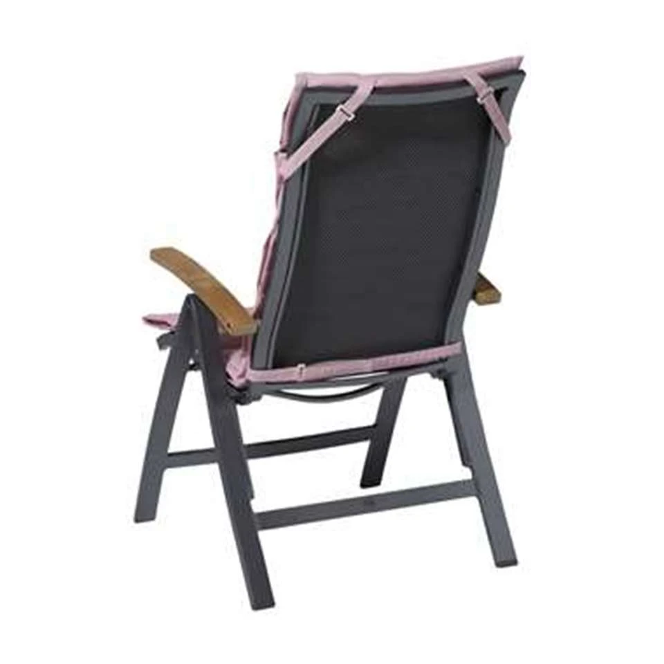 - Het is een zacht roze tuinstoelkussen.