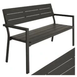 Met de uitnodigende tuinbank van tectake creëer je een oase van rust in open lucht om op adem te komen en te ontspannen. Het solide frame van gepoedercoat aluminium alsook het zitvlak en de rugleuning van duurzaam polywood kenmerken de belastbare constructie. Door het bewust bescheiden gehouden, slanke design integreert de zitbank harmonieus in elke omgeving. De opbouw is in een handomdraai uitgevoerd en het onderhoud minimaal – zo blijft er meer tijd om te genieten.