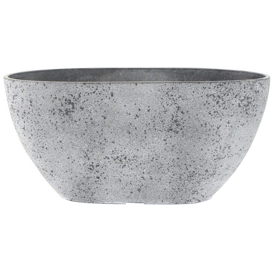 Bloempot/plantenpot balkonbak van gerecycled kunststof en steenpoeder in de kleur beton grijs met diameter 36 x 16 cm en hoogte 16 cm. Potten voor buitenplanten of kunstplanten. Deze plantenpot voor buiten heeft een stijlvolle uitstraling. Een unieke duurzame mix van materialen dat nu geen afval is, maar een prachtige duurzame bloempot. Een sterke, mooie pot die vriendelijk is voor het milieu en de portemonnee. De pot heeft gaatjes in de onderkant dus een opvangbalkonbak is voor binnen gebruik vereist. Zoeknaam serie voor de balkonbak is Nova concrete beton grijs. Deze serie potten hebben een eigen drainagesysteem onderin de pot.