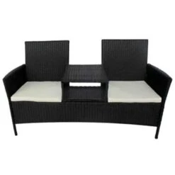 Dankzij het weerbestendige en waterdichte PE rattan is de bankset eenvoudig schoon te maken, slijtvast en geschikt voor dagelijks gebruik. De bank heeft een stevig gepoedercoat stalen frame. De bank is ook erg licht, waardoor je hem gemakkelijk kunt verplaatsen. De 2 zittingen zijn verbonden met een tafeltje, waarmee je je drankjes en je favoriete boeken binnen handbereik kunt houden.